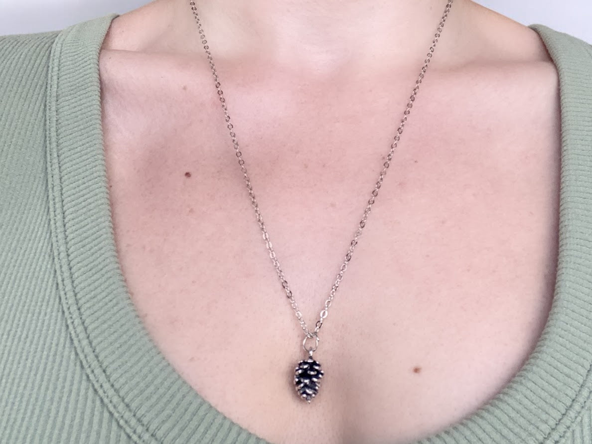 This necklace is a beautifully crafted piece that brings nature’s elegance to life. Featuring a delicately detailed pinecone pendant, this necklace is set on a durable stainless steel chain that enhances its sleek and timeless design. The pinecone, a symbol of renewal and resilience, adds a meaningful touch to this charming accessory.
